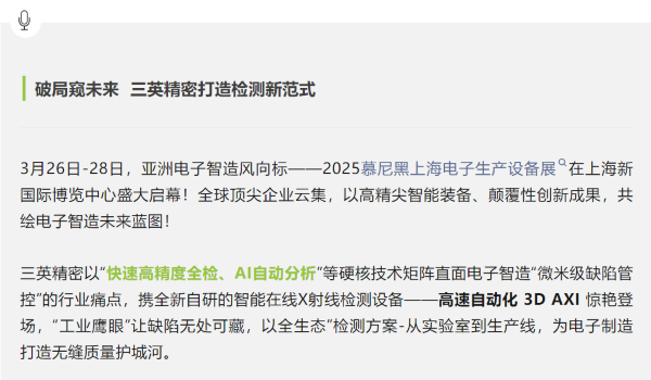 3D AXI引爆全場(chǎng)!勢(shì)領(lǐng)電子智造檢測(cè)新未來(lái) | 三英精密2025慕尼黑上海電子展高燃收官!